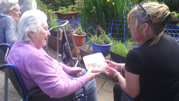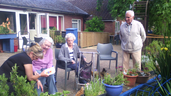 Betty recently agreed to be in charge of feeding the fish. You can see Betty (most) days in the garden with a box of fish food. The fish are going to get fat! Thank you Betty!