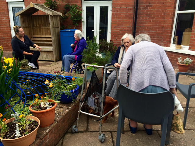 Sometimes we forget how fortunate we are with our garden. Beautiful and relaxing views, place to get busy gardening, relaxing by the pond and visiting our menagerie. Today was a lovely mild late afternoon and Betty, Barbara and Jo enjoyed the sounds of the water and feeding our fish, hens and Tinker.