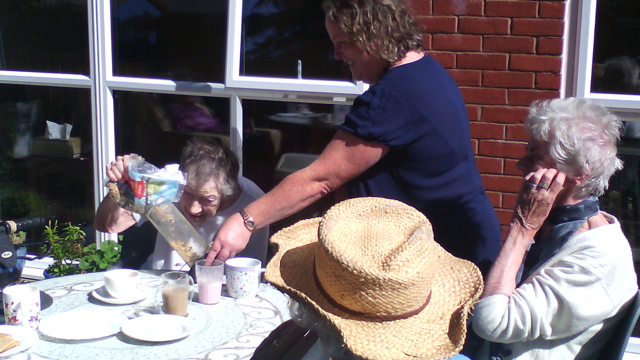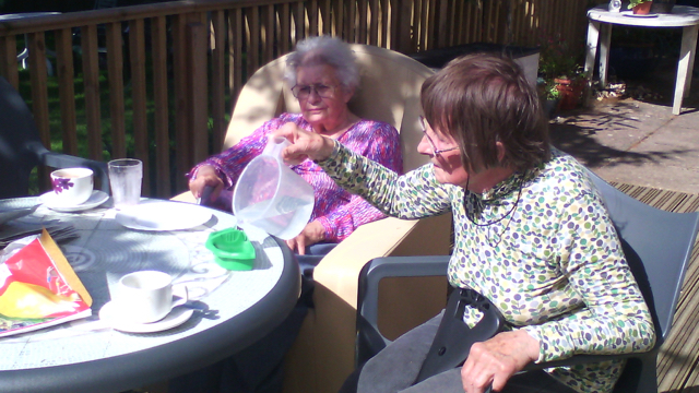 A lovely morning spent outside with over tea and biscuits with walks, feeding fish, books and puzzles. Super!