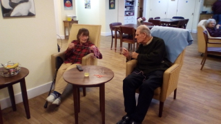 the wool requires patience (I cannot do it!), sense of humour, good hands and can be a very sociable experience. Harry and Margaret have almost done it…