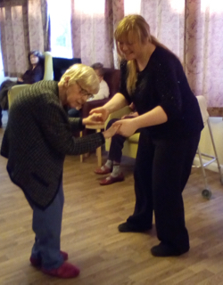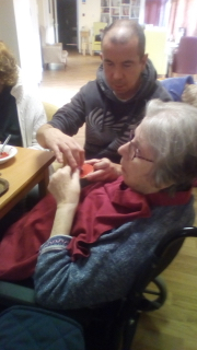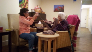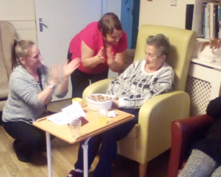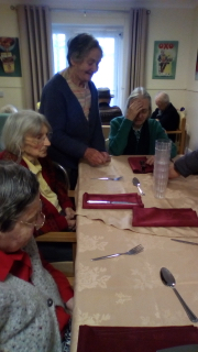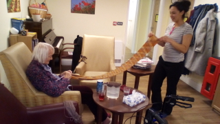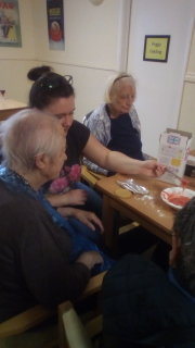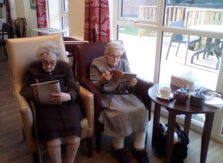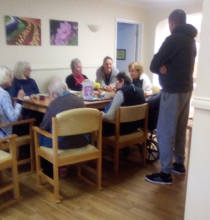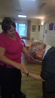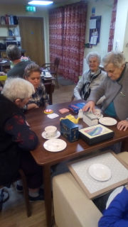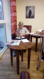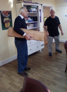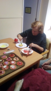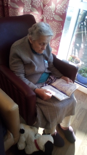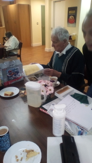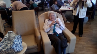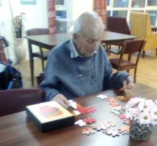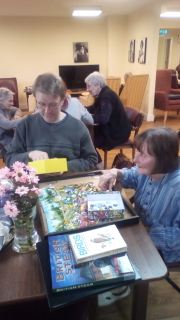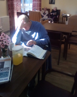 Some people make certain things interesting and others follow. Sybil for example with her beautiful scarves got Margaret knitting again, Maurie and Betty enrolled Joan recently into word search club, and Collin followed Ron’s footstpes and joined Ian our maintenance man in putting new beds together .