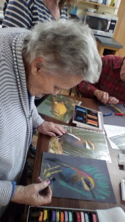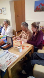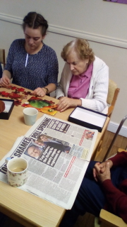 Super morning with tables busy with games, reading, some pampering (Valerie likes her nails!) and having a good time