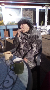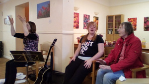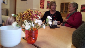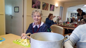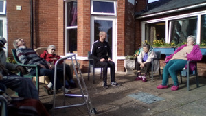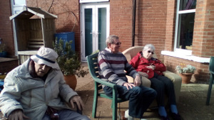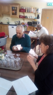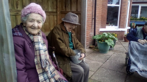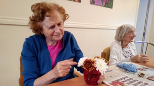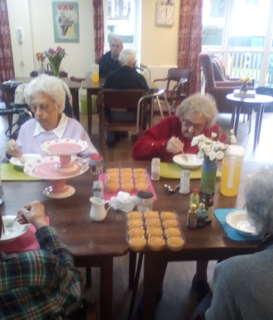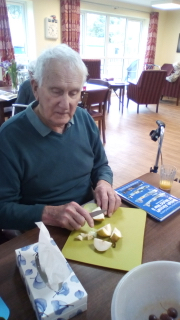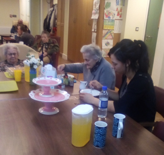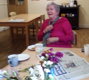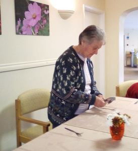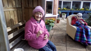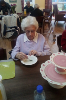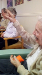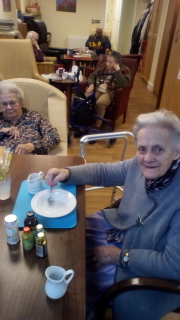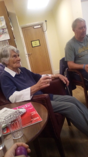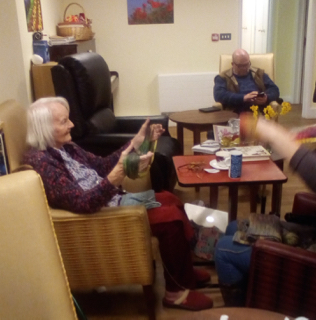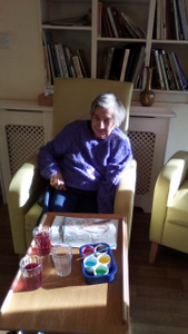 Almost there – last week we also had birthdays – Happy Birthday Bill! (with a super cake and candles), as much time time outside as we could catch on the walks and in the garden, games, dancing…. It was a great week and it was lovely to see Bill joining the games and having such a good time! Val decided to join the art club and she did enjoy her time with paints! Joyce braved the outside with Tricia going out every day and loving it!