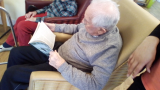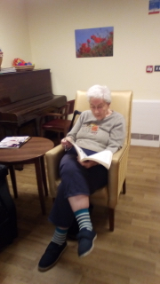Simple things usually – having things to do that make you feel useful and busy, realising suddenly that it is already lunchtime, having a quiet moment after lunch to rest, read, have a nap or chat, going into the garden to enjoy fresh air or joining others on Rosemobile.