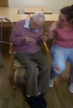 We were delighted when Tracey H came back to Rose Lodge; the residents and the visitors cannot help but smile and laugh when she is around. Bursting with energy and humour you never quite know what will happen and you know you will have a great time. A musical bingo? So much more than bingo – singing, dancing, jokes, laughing.  Valery cannot help but smile and join in!