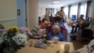 After a pampering session with Annabel and a new haircut Marion loved her flowers!