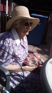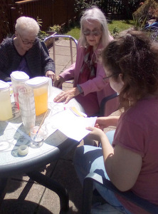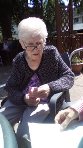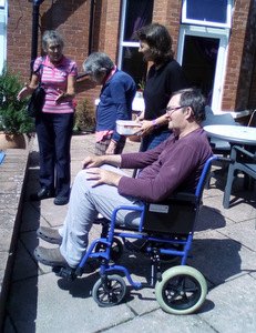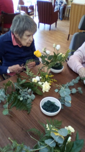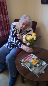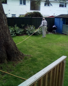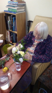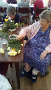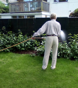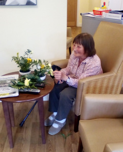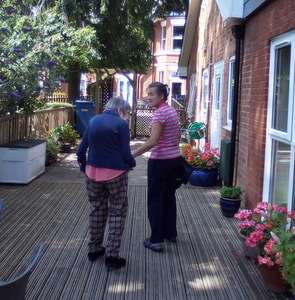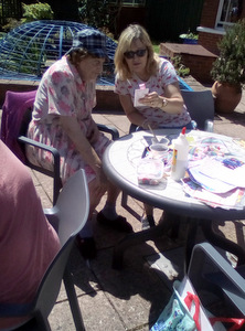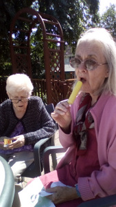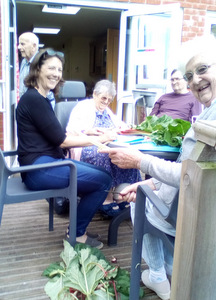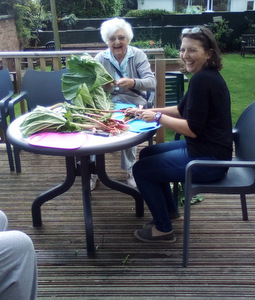 Ron is now not alone working in the garden as Chris joined Peter in the watering department. Thee is also harvesting fruit which we eat at lunch (rhubarb crumble sounds great) and for others there are always our animals – there is fish to feed, dogs and cats to cuddle and rabbit to talk to!