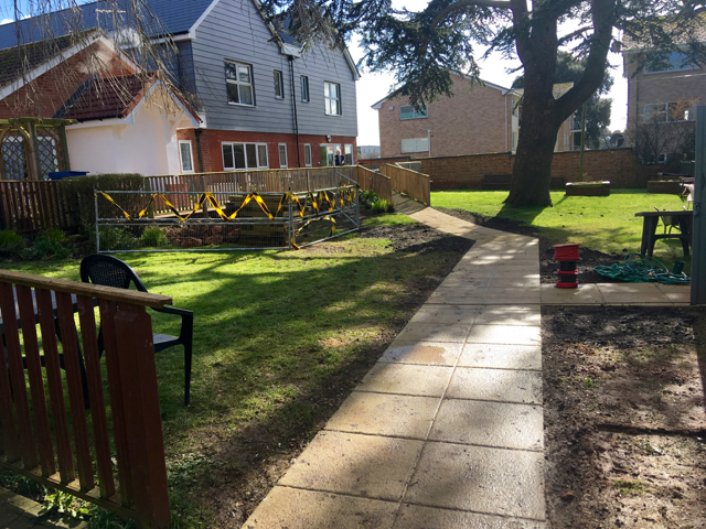 This pretty garden shelter was built when we converted a couple of bedrooms to the full Cottage specification which is designed specifically for people with early dementia. The shelter gives residents a convenient resting point on the way to an outing, or just a dry place to watch the garden in the rain. A new raised bed will shortly complement the shelter, and we have asked a local artist to paint it with a fantastical mural.