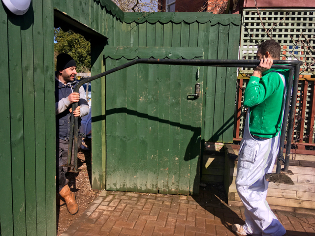 Visitors using the garden gate will be welcomed by a grand entrance. A wide long path cutting across the lawn taking you pass the cedar tree to the cottage. That path means we will also be able to take long walks from the terrace, down the ramp to the vegetable garden, along the new path and back through the terrace.