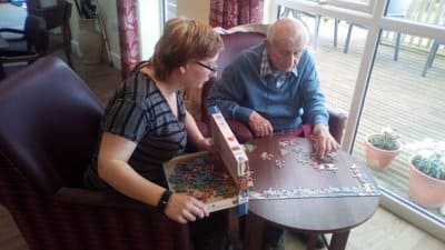 Communication generally becomes more challenging for people as the dementia progresses and this is a particular challenge in the Lodge, our community for people living with the later stage of dementia. Our ability to experience emotions seems undiminished at those later stages, and we can communicate our love without words. The quiet presence of another person, the holding of a hand, a kiss, a massage. Just being together with another person lets us know we are not alone, that we matter, that we are safe and that we are loved.