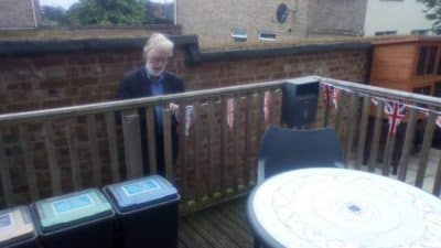 In the garden of course, on our newly extended terrace.