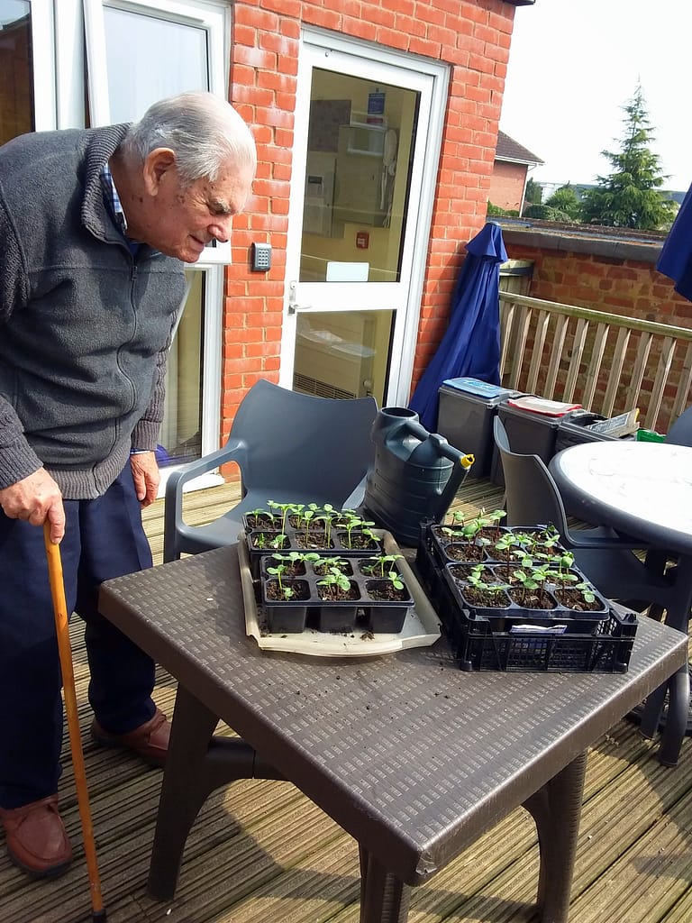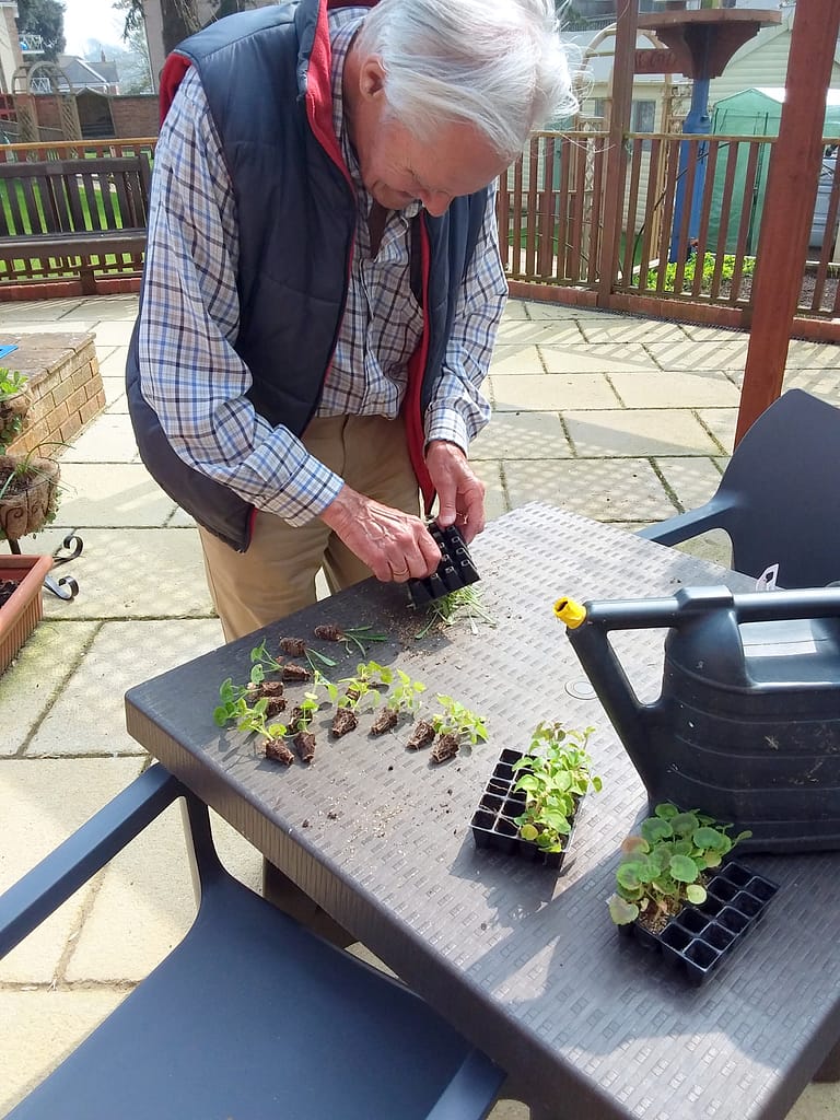 Harry and Clive are preparing the baby seedlings for planting in our garden.