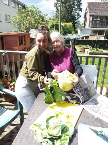 Whilst the Guinea Pigs are having some cuddle time with Mary it’s a great opportunity to give the hutches a once over, good job ladies.