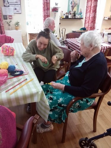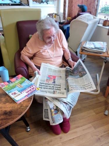 Reading the news, drawing a picture and hobbies with wool