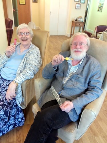 Our regular exercise sessions with Mark go down a real treat, working those arms, hands, legs and feet.