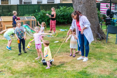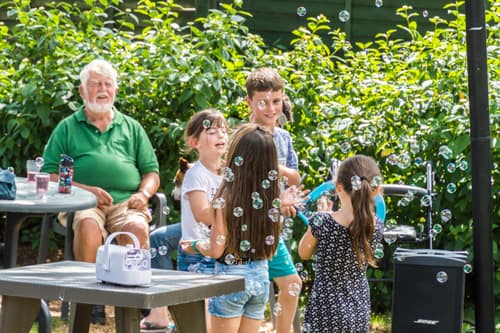 Simply the best! Amazing Sandy Sparkle getting everyone singing and dancing, Prosecco, lots of food, special entertainment for the kids with Mrs Snuggles and famous slime lab, and gigantic bubble making…… We slept well on Saturday!