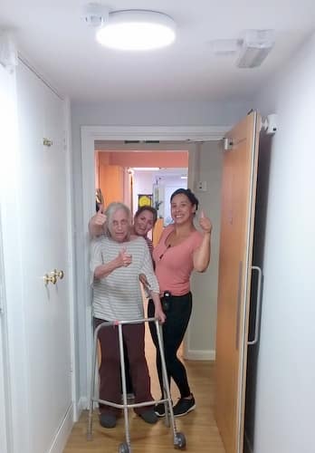 Amazing to see Maureen out of her chair and now walking, well done Maureen