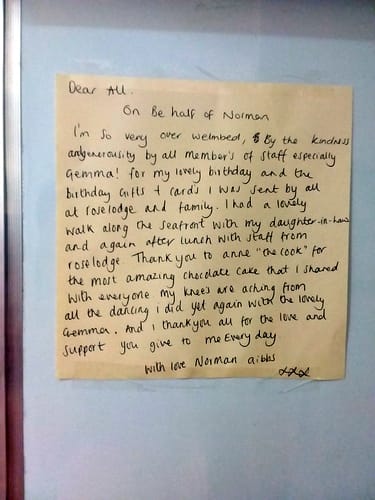 Many happy returns Norman, from everybody at Rose Lodge