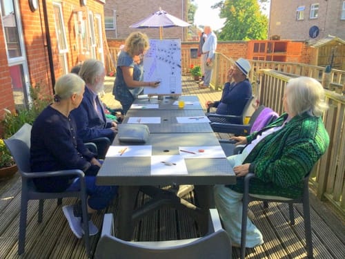 Our regular art class with Angie was well received outdoors,