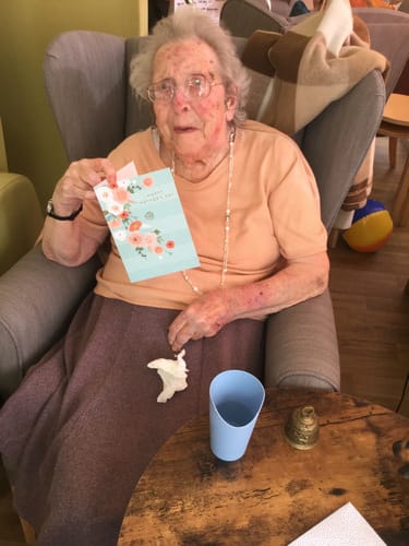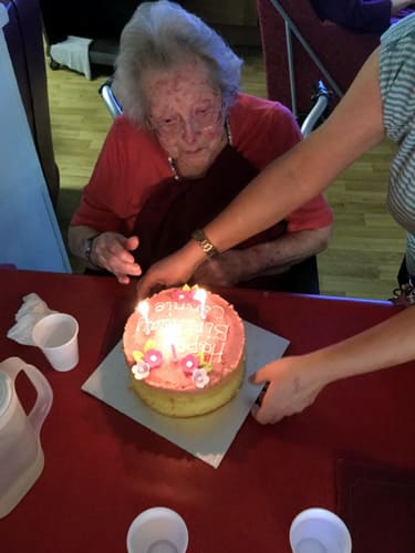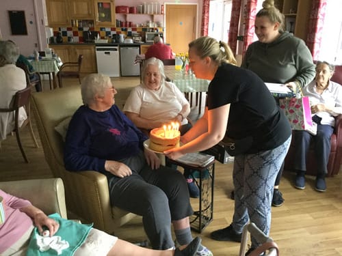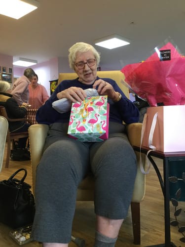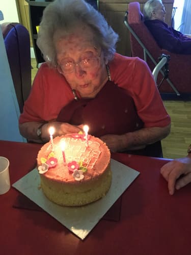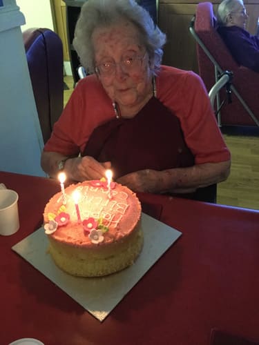 Connie celebrated her birthday with cards and gifts from family, beautiful cake and her friends singing ‘Happy Birthday’
