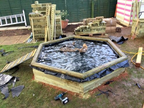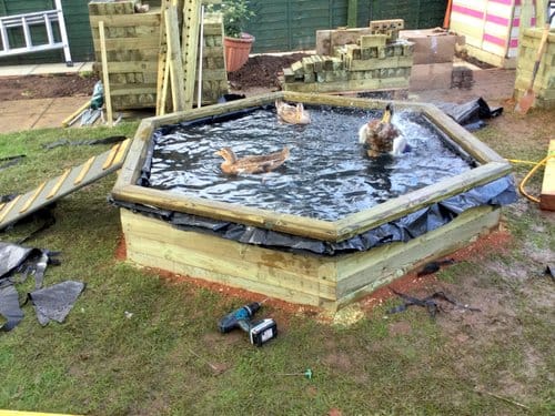 Ian has been busy making a pond for the ducks, together with more matching furniture and fencing for the garden, but the ducks didn’t want to wait, as soon as he put some water in the pond, they were there thoroughly enjoying their new play pond, even before it is finished. The vision we have for our new petting area looks really exciting, and it promises to be a fantastic space in our garden once it’s completed.
