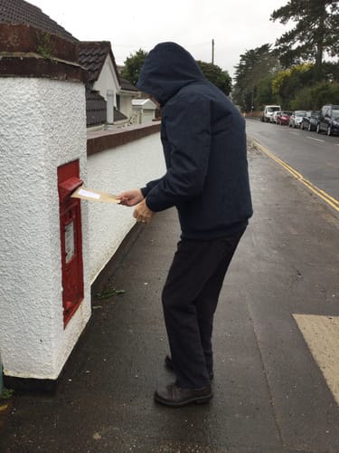 Clive drops off the post (and combines it with a walk) on most days and a little drizzle is not going to deter him 🙂