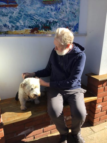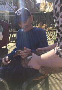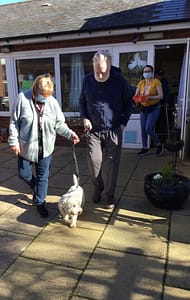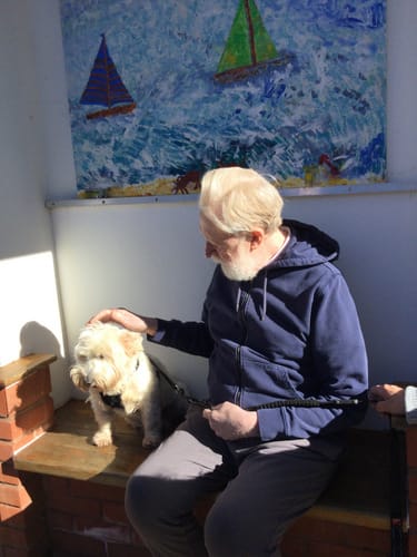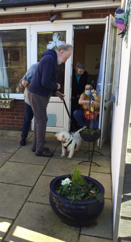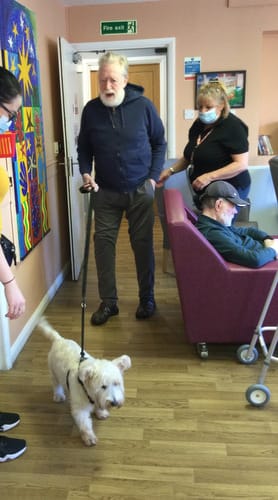 Christopher had a great surprise during family visit when Carol brought Christopher’s beloved dog Dougie.