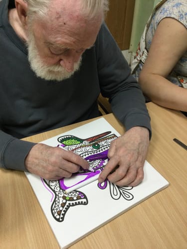 These days adult colouring books are popular with people at all ages and there is such a wide variety of books on offer. Christopher loves using intricate patterns to create colourful images.