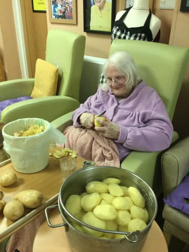 Last night Rosalie wanted to stay up late in the night and decided that peeling a large bucket of potatoes will keep her busy enough.