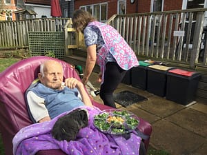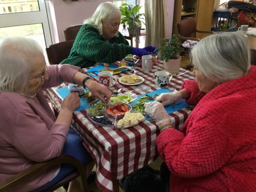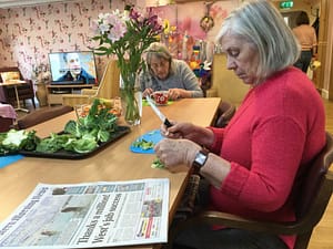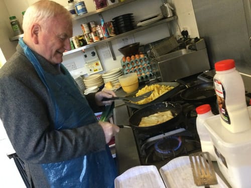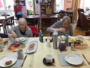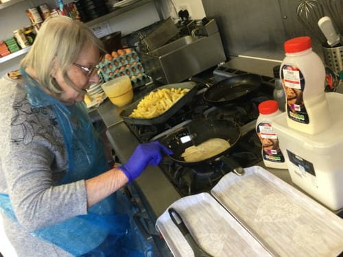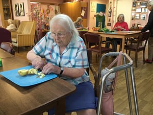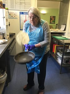 From chopping tasty food for the guinea pigs (including apples!) and feeding them (after they had a bath), to chopping fruit salad and frying pancakes for supper – pancakes with fresh fruit and whipped cream! Yummy