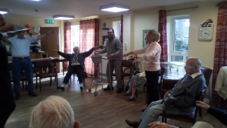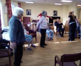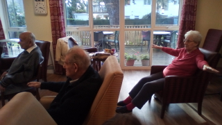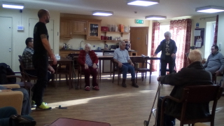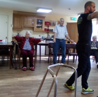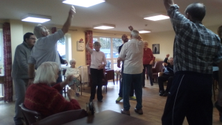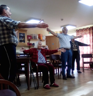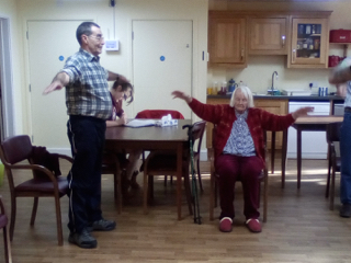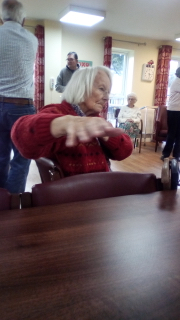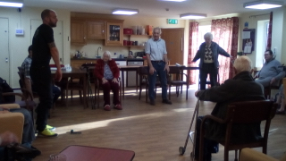 these days when Mark arrives it truly turns into marvellous mayhem. Watch the photos – starting with everyone sitting down soon Brenda gets up, followed by Collin, and then Nigel, Rose and Scottie, and before you know it everyone is going for it!! Absolutely fantastic – whatever it is, Mark has got it! And it is wonderful to see Sybil loving both fitness and Tai Chi.