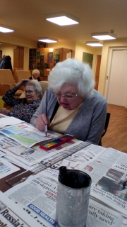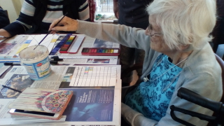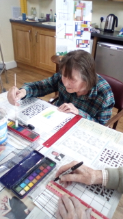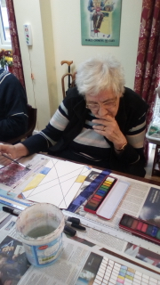 Another successful session with people experimenting with Mondrian Miniatures or doing their own thing. Under Angie’s guidance people who never did art before enjoying exploring new interests.