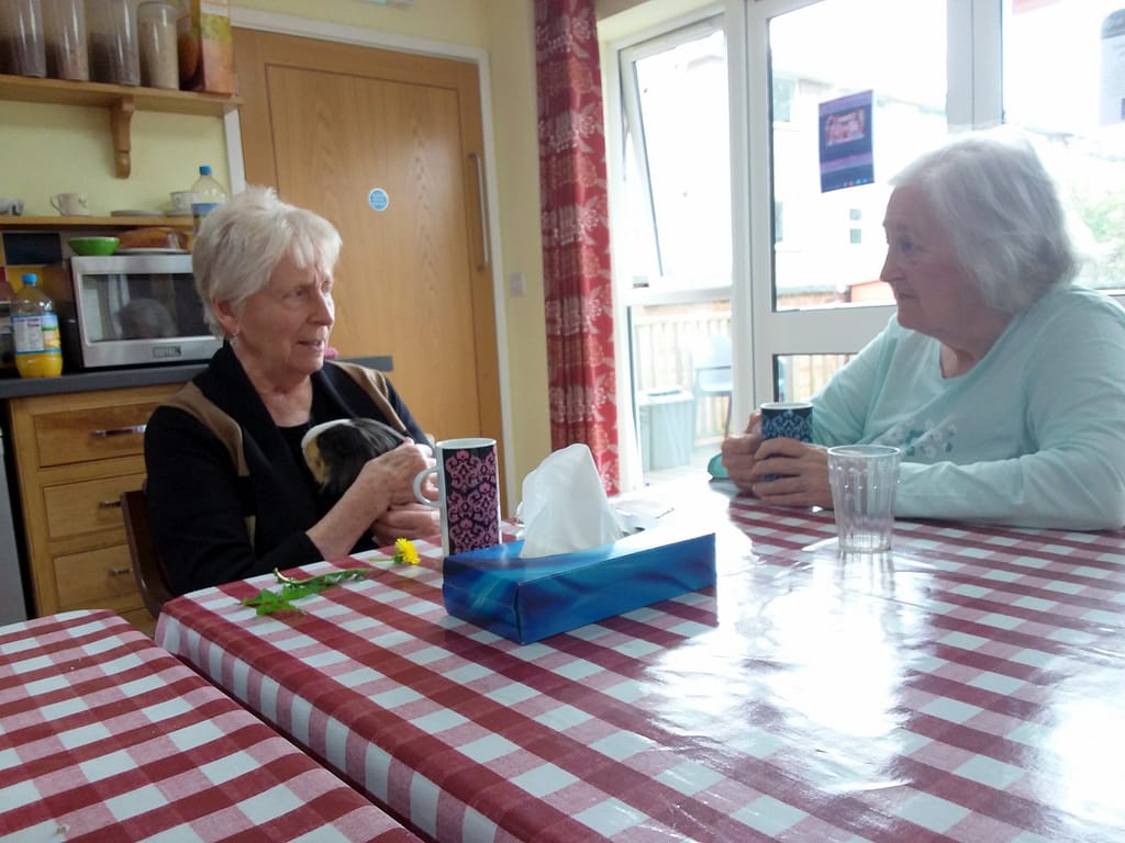 Pleasant company with beautiful flowers, who could ask for more..