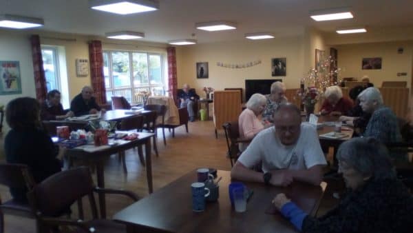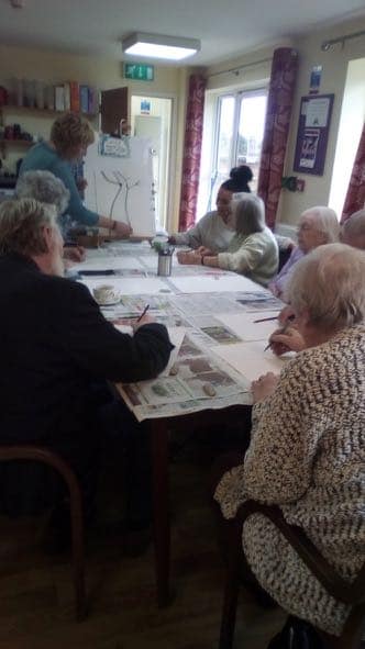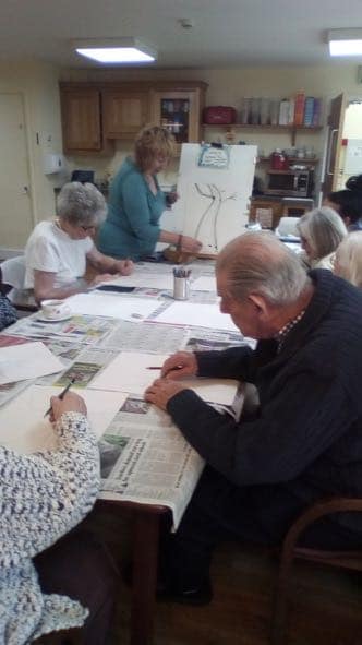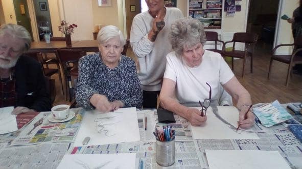 This afternoon, in the cottage the art club was exploring perspective, and in the Lodge residents were absorbed in a live music performance.