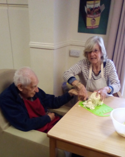 From preparing veg for lunch, fruit for fruit salad, laying tables,making cookies or platting Jo’s hair. All make us feel needed and allow us to take part in running our communities, keep us sociable and happy.