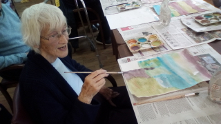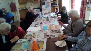 Art@Rose Lodge with Angie group explore watercolour over the last two sessions. Watercolours take us by surprise as they are not so predictable and you need to go with a flow. A new display with watercolour works is up.