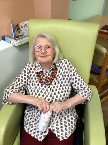 Marion celebrated her birthday yesterday with gifts, cards and a birthday cake to bring a smile, Many Happy returns Marion from everybody at Rose Lodge