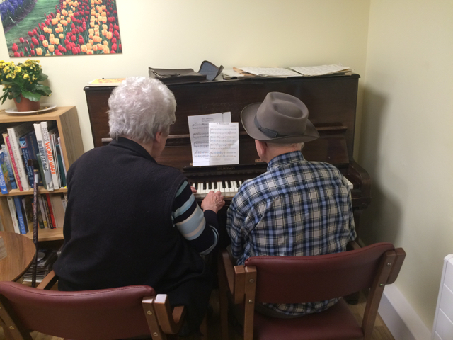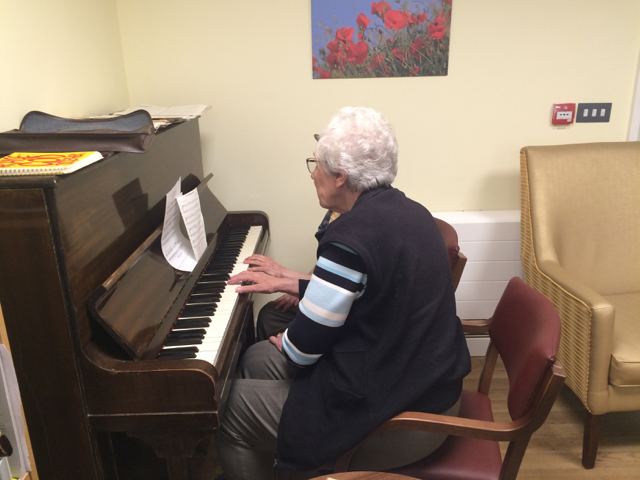 We were very fortunate to have received a beautiful upright piano which now sits in the Cottage Library. Joan, Rene and Mary all had a go.