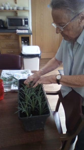 Clare has taken up gardening with a vengeance and she is roping in our residents. Inside when the weather is poor and outside when it’s good (not so much of that recently). I think soon we will be running out of pots and raised beds…