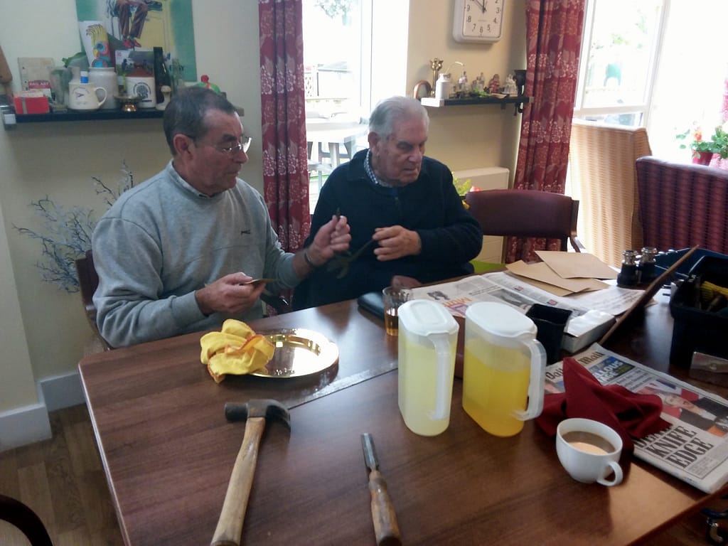 Scotty is busy cleaning the tools whilst Harry catches up on the latest newspaper