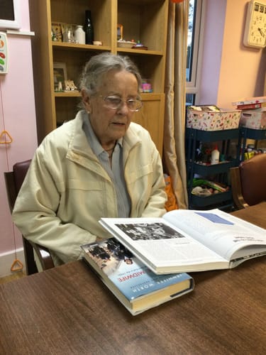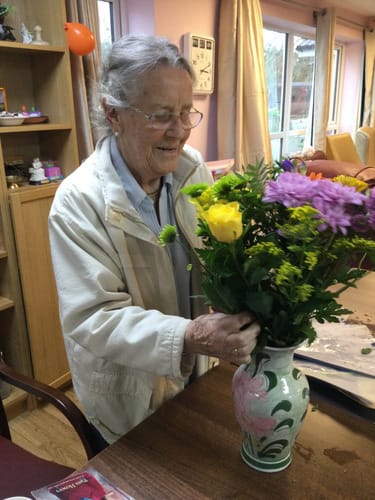 Smiling whenever arranging flowers. Talking to her friends. Reading.