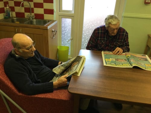 comfortable in each other’s company reading morning papers