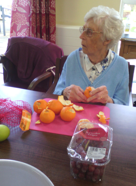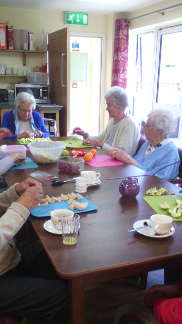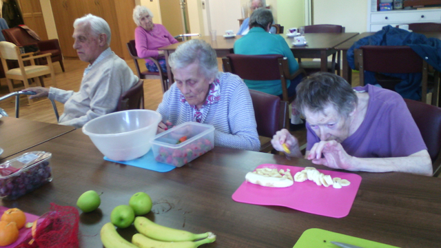Preparing food for yourself and others is a great way to keep busy and spend time catching up with others at the table over a cuppa. The fruit salad was served as an afternoon snack and it was lovely!