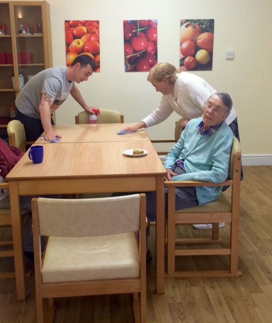Being busy doing domestic things is wonderfully relaxing and makes you feel good – from cleaning tables with Gavin to sorting beautiful arrangements with Gemma.