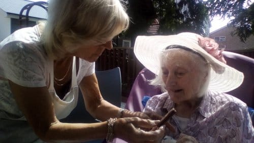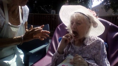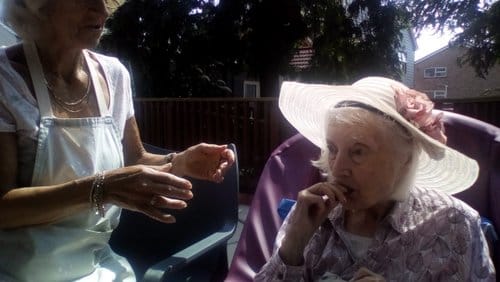 .. and we may be quite tired a lot of the time. But we can still enjoy wearing a pretty hat and eating a chocolate, sitting in the sunshine and enjoying the full attention of another person. Those sensory pleasures become more and more important as the dementia progresses. Our ability to communicate, to think and reason is greatly affected at the later stages of dementia but our ability to experience feelings, smells, and touches persists for much longer. When I see these pictures, I see the dignity of a person who has lived a full life and who gets up every day to live another day to the full.