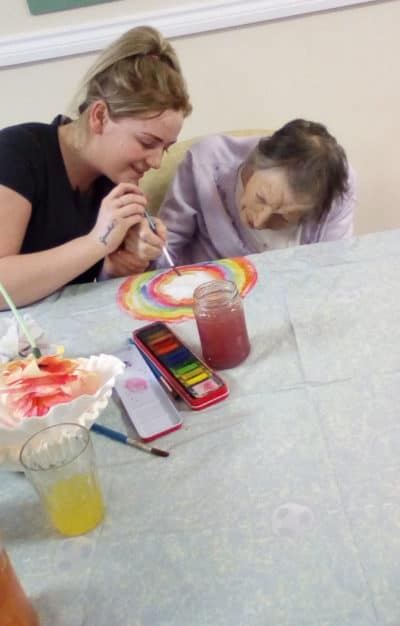 At the Lodge today. I love how the carer mirrors the posture of the resident. It’s a powerful way to express your empathy and togetherness through body language. It comes quite naturally to many carers, others have to learn it.